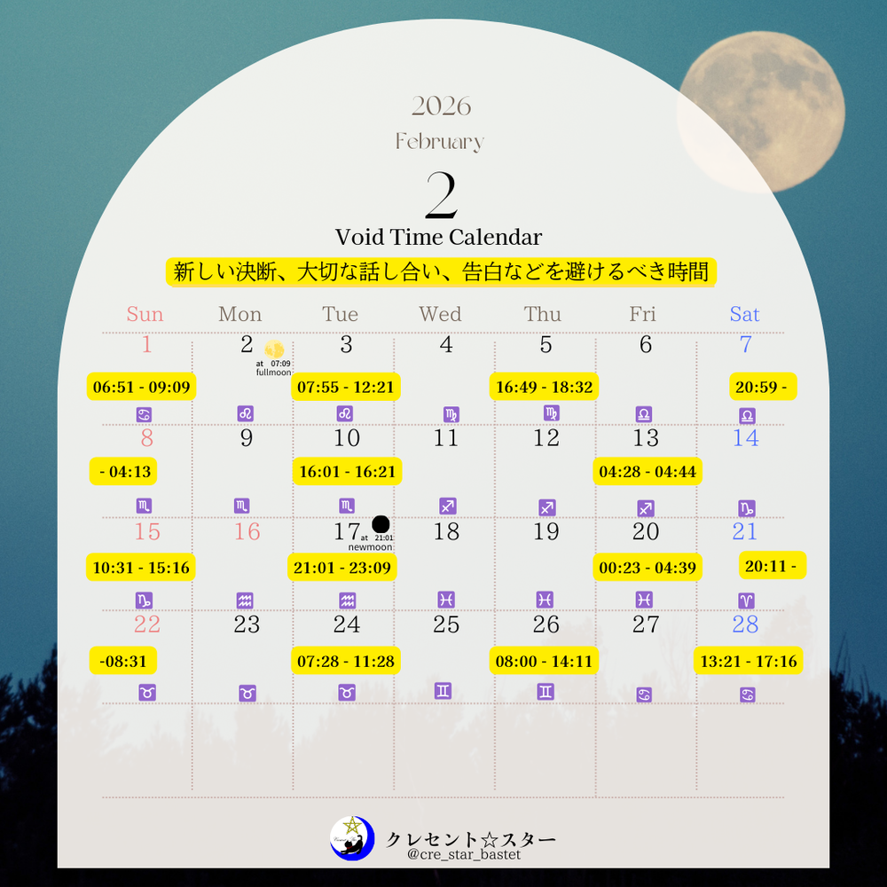 🌜2月のボイドタイムカレンダーを更新しました。